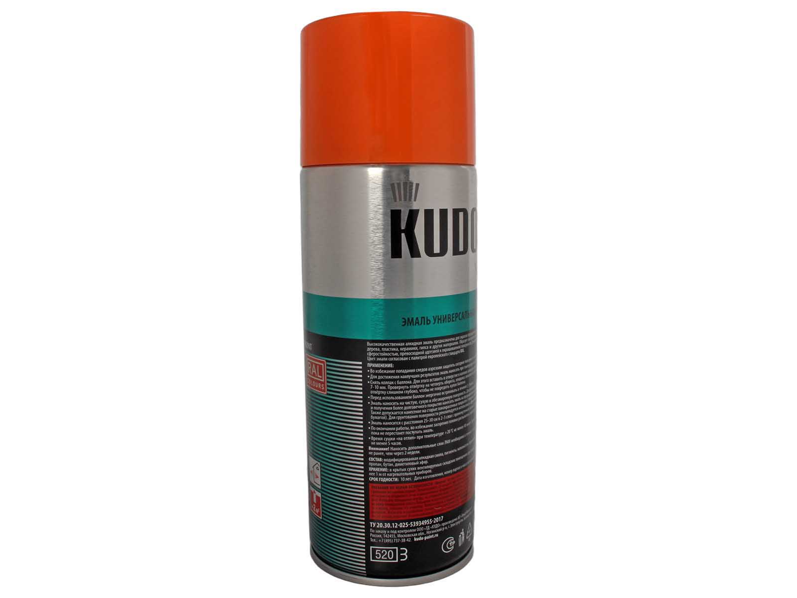 Высококачественная универсальная алкидная аэрозольная краска в баллончике KUDO предназначена для окраски предварительно загрунтованных металлических и деревянных поверхностей. Аэрозольная краска легко наносится на труднодоступные места.