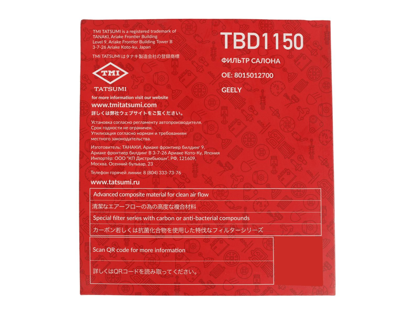 Салонный фильтр TATSUMI TBD1150 — это специальный элемент системы кондиционирования, отопления и вентиляции, который предотвращает попадание пыли, пыльцы, мелких частиц, неприятных запахов и других