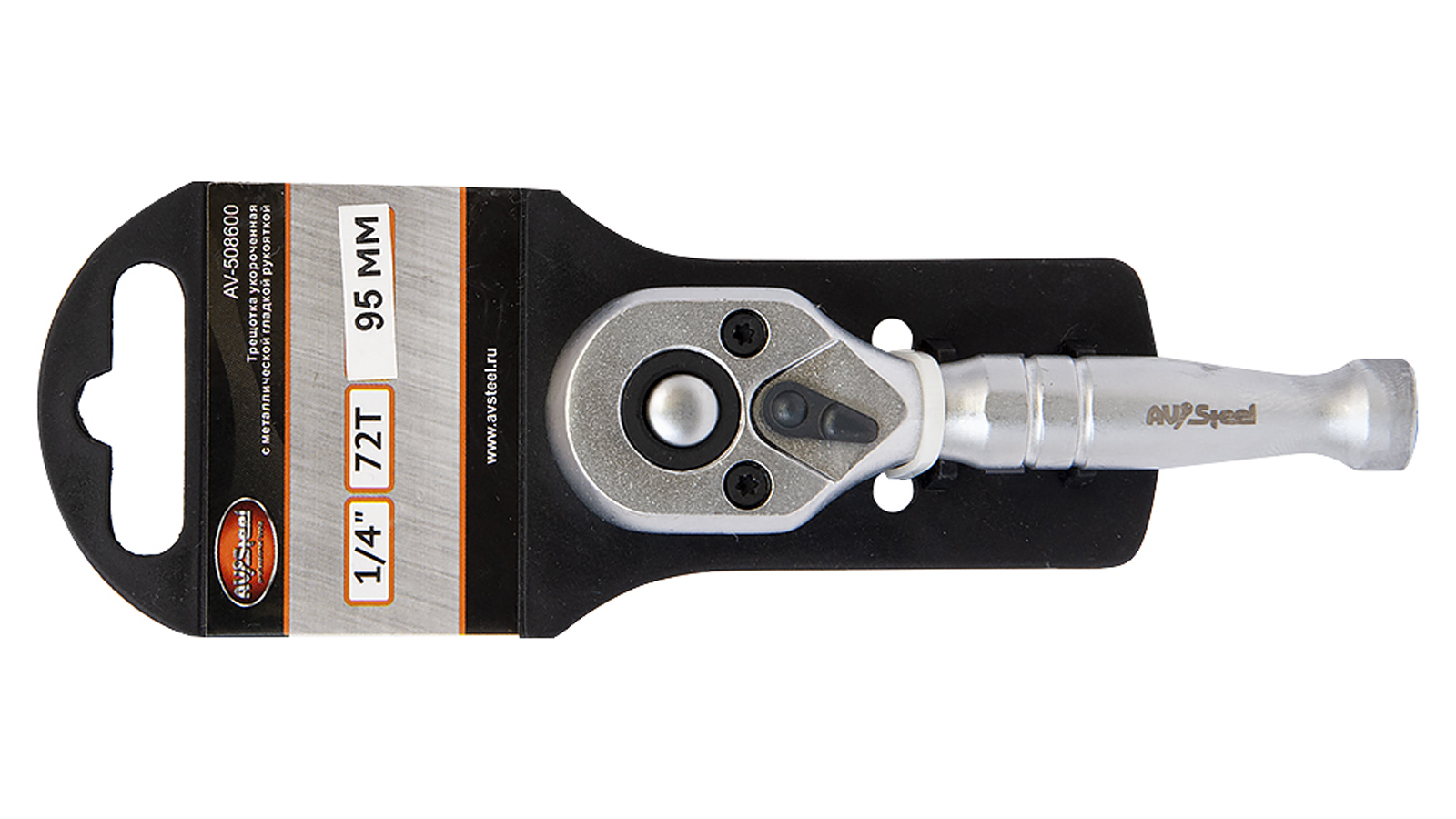 Трещотка AV Steel 1/4 72-зубца укороченная 95 мм предназначена для быстрого и эффективного закручивания или откручивания крепежа.