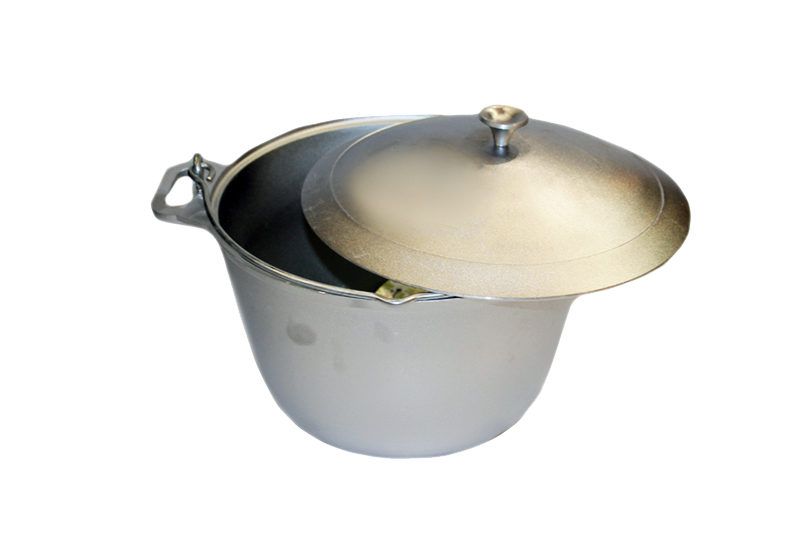 Прочный литой корпус гарантирует долговечность и прочность, а также обеспечивают равномерное распределение тепла для приготовления пищи, тушения и поджарки с сохранением естественных ароматов. Для подвешивания над костром или для переноса котел имеет удобную ручку.