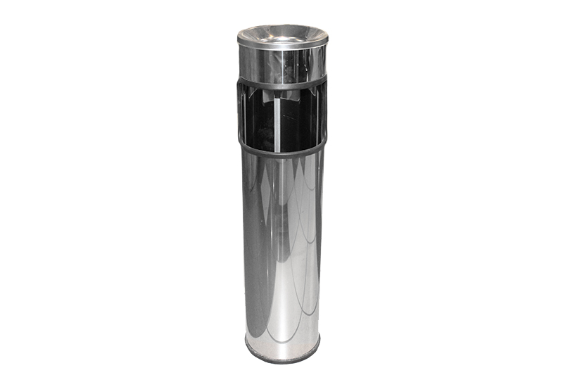 Корзина изготовлена из зеркальной нержавеющей стали, что позволяет использовать как внутри помещений, так и на улице. Урна снабжена верхней крышкой из зеркальной нержавеющей стали, а также алюминиевым поддоном, для предотвращения попадания горящих окурков и пепла. 61х15х15см