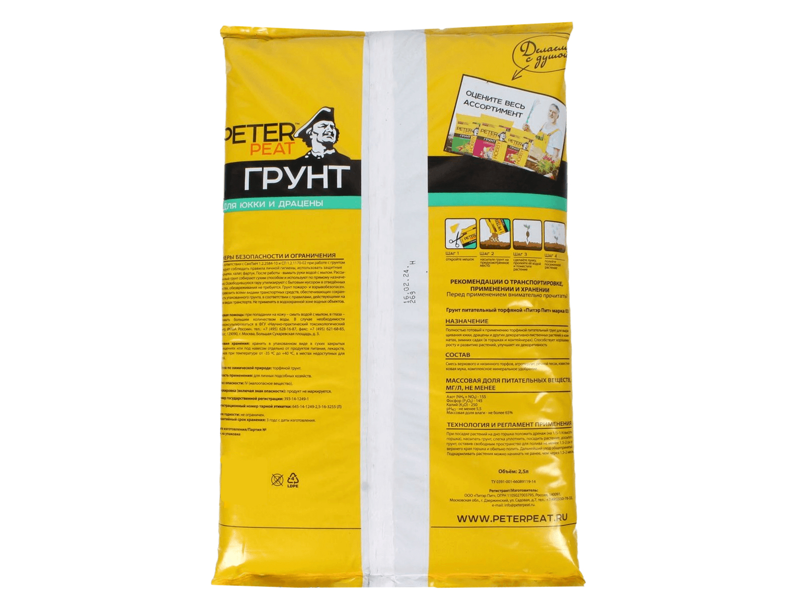 Питательный торфяной грунт для выращивания юкки, драцены и других декоративно-лиственных растений в комнатах, зимних садах (в горшках и контейнерах).