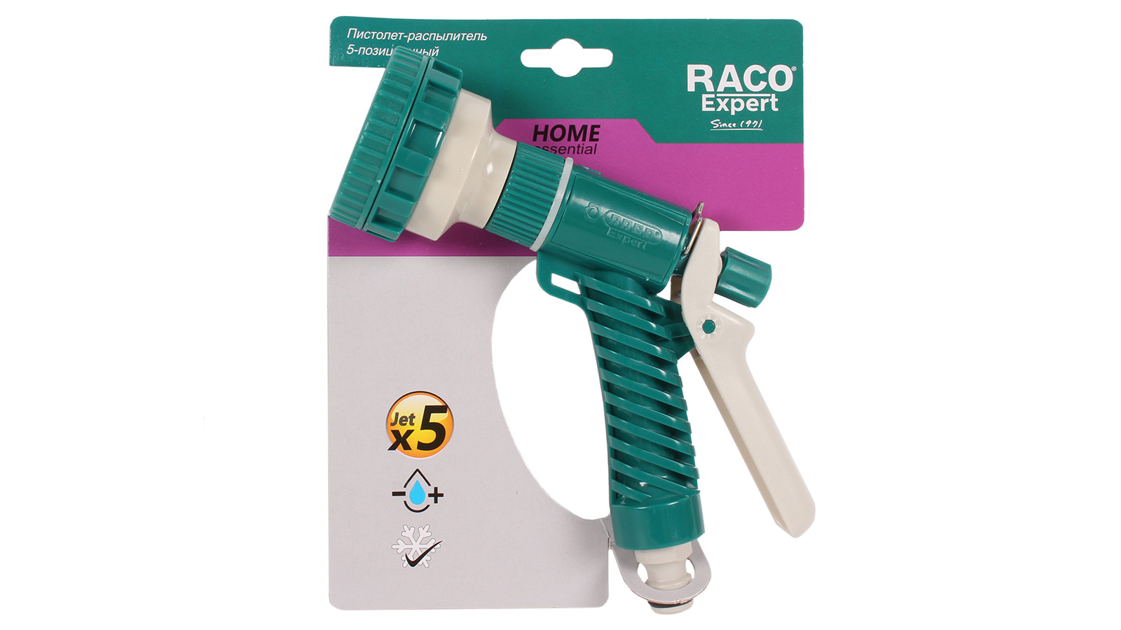 Пистолет-распылитель RACO может работать с водой температурой от +70 до - 5 градусов. Пять режимов напора струи (жесткая, мягкая струя, распыление, водяной конус, аэрирование) позволяют выбрать нужный вариант разбрызгивания воды в зависимости от потребностей. Инструмент выполнен из ударопрочного ABS - пластика, что увеличивает срок его службы.